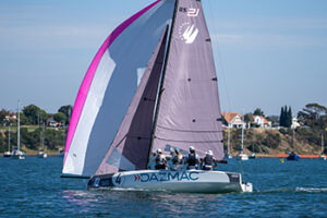 On Australia Day, eight teams took to the waters of Corio Bay, with each team made up of two men and two women, carrying 64.6 sqm of sails.