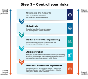 To identify hazards specific to your vessel’s operation it is recommended to consider your ‘types of operation’ and for each identified hazard, think about what could go wrong and how it could potentially endanger your life or that of the crew.