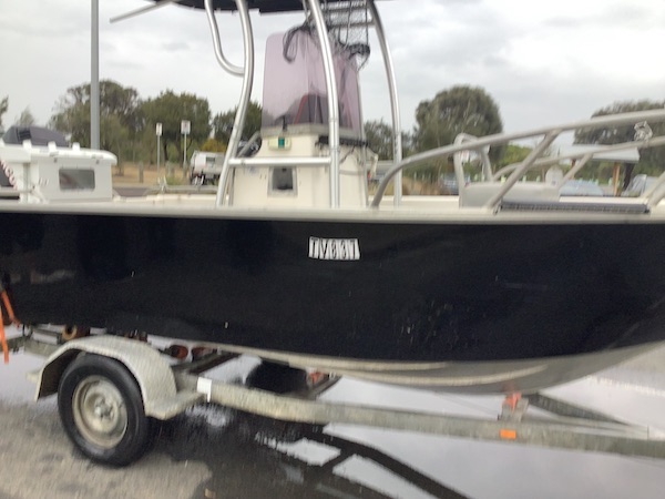 The 5.2m boat had a distinctive fish skeleton sticker on its body and a black and white centre console.