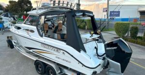 The SL 27 HT is packaged up on an aluminium dual axle high-quality Australian-made Mackay Trailer and powered by a Mercury Outboard or Volvo Penta Stern Drive. Every boat, motor and trailer package are custom-made at the Whittley Marine Group’s Factory in Melbourne. Whittley Factory Owned Dealerships around the country are taking orders on the new SL 27 HT model.