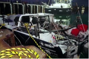 To determine the extent of the damage and have it repaired, Xavier intends to bring the damaged yacht back up to GCCM. The vessel has many holes that are now absorbing water. To stop further flooding, the bilge pumps are still operating on the backup battery system. All of the boat’s other electronics, meanwhile, are underwater.