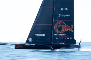 After yesterday’s cancellation of racing due to inclement weather, the Louis Vuitton Cup schedule got right back on track with five races completed in a shifting 6-10 knot thermal southerly breeze that challenged the sailors. The big story of the day was Alinghi Red Bull Racing – a team that at their own admission has had a ‘reset’ – scoring their second win of the regatta to now move off the bottom-step in the rankings with the very real prospect of a safe passage through to the semi-final stage.