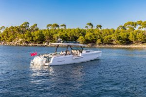 Launching in early 2025, the Axopar 45 Sun Top represents the pinnacle of modern day boating. With triple 300hp engines, a spacious aft deck, and versatile social hubs—including an innovative bow lounge—this vessel is designed for thrilling performance and unforgettable adventures on the water. Whether cruising the Harbour or entertaining family and friends, the Axopar 45 delivers exceptional functionality, style, and speed.