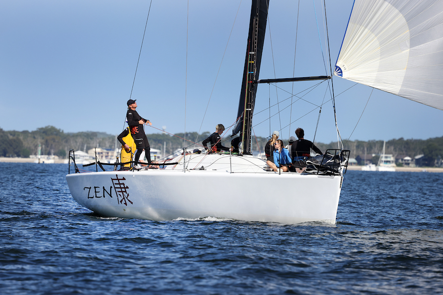 A similar fate befell the Cape 31 Kukukerchu at the gate mark, possibly indicating a quirk of the Port Stephens tide. The Farr 40 Zen was boat of the day, winning the first race then posting two seconds after an enthralling battle with KD1, another Farr 40.