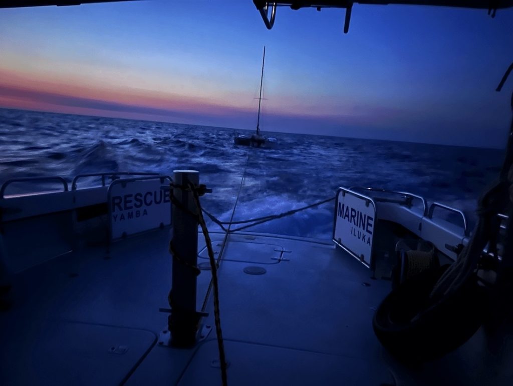 “IY 30 reached the vessel, which was 26 nautical miles (48km) south-east of Yamba, just after 11pm. The crew checked on the welfare of the two men on board and secured a towline before beginning the journey back to Yamba Marina,” he said.