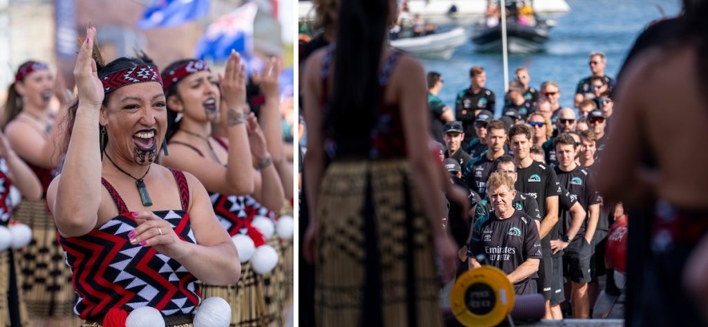 For the Kiwi fans, the sight of the famous Ngāti Whātua Ōrākei performing a ceremonial Māori haka before leading the yacht out in Te Kawau—a traditional waka (canoe)—set the tone for the day and it was all on in shifting conditions with the famous America’s Cup trophy within reach.