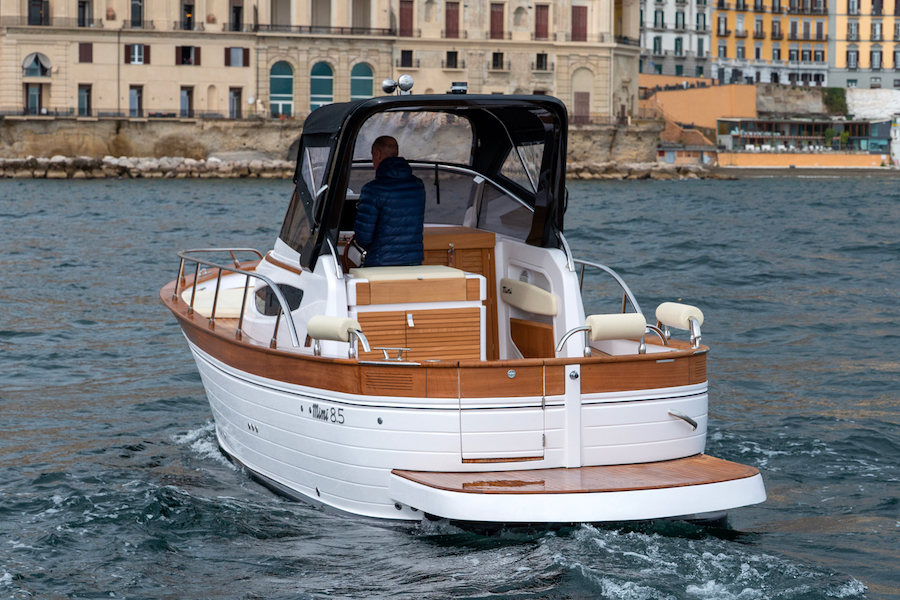 Valerio Rivellini, recognised as one of Italy’s leading naval architects and designers and Domenico Senese, a scion of the celebrated Cantiere Mimì boatbuilding family celebrating their 50th anniversary, will personally accompany the first Mimì model to our shores.