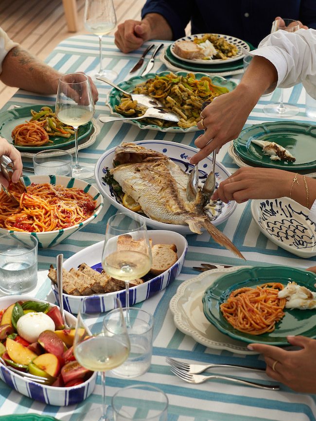 Guests can enjoy tailored menus by Raes executive chef Jason Saxby, showcasing the finest seasonal and local produce. Highlights from the summer menu include oysters with native finger lime dressing; Queensland scallops with XO pangrattato; and zucchini flowers with spanner crab, lemon myrtle salt, and lemon aioli for canapé-style service. For a seated lunch, guests can enjoy dishes such as whole snapper baked in salt, seaweed and lemon myrtle; bistecca Fiorentina with green chilli salsa verde; or tagliolini with spanner crab, shellfish XO, tomato, pangrattato and chilli.