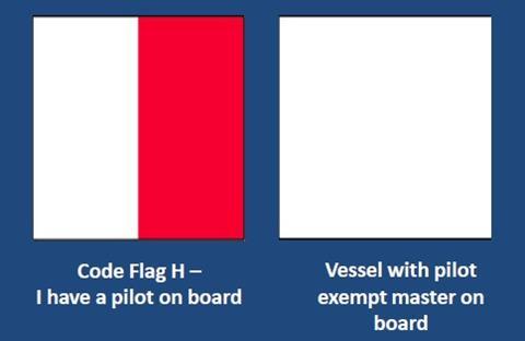 • Plain white flag – vessel with a Pilot-exempt Master
