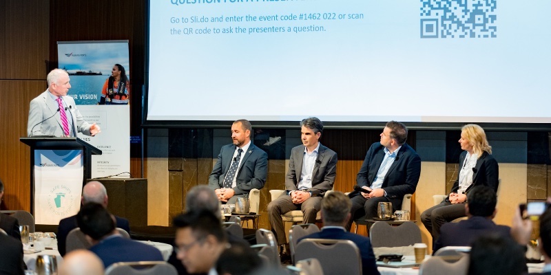 The event features keynote presentations and Q&A sessions involving industry experts including representatives from the Australian Maritime Safety Authority, Australasian Marine Pilots Institute, Maritime and Port Authority of Singapore and Mission to Seafarers.