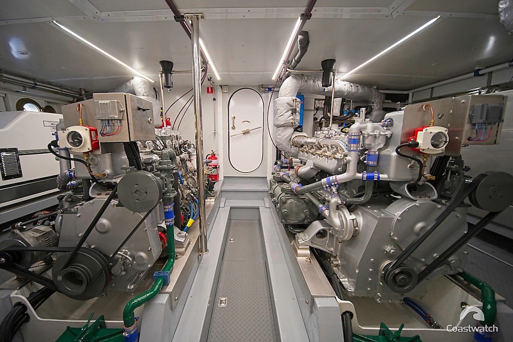 Performance improvements extended to efficiency and onboard systems. On the delivery trip to Cairns, South Pacific II achieved 10.5 knots at just 25 litres per hour at 1350rpm,  impressive numbers for a vessel of her size and pedigree.