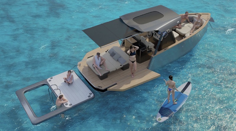 The Alukin Ocean Air 8 has been developed in a collaboration between Nimbus Group’s brand Alukin and the Norwegian companies Pascal Technologies and Evoy. The hull is based on Pascal’s energy efficient AirHull technology in which air is pumped underneath the boat’s hull to reduce water resistance, resulting in up to 50 percent less energy being used for propulsion and increasing the boat’s range by 50-100 percent compared to a traditional hull. By using aluminium for Ocean Air 8’s hull and superstructure the boat is 100 percent recyclable, which further reduces the boat’s environmental impact.