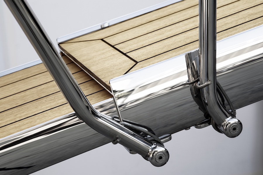 Representing the company’s more “classic” hydraulic production will be the PI 461 MISS, one of Besenzoni’s most appreciated gangways thanks to its lightness and functionality. Operated via remote control or wall panel, it can lift up to 200 kg, also functioning as a crane for tenders and water toys.