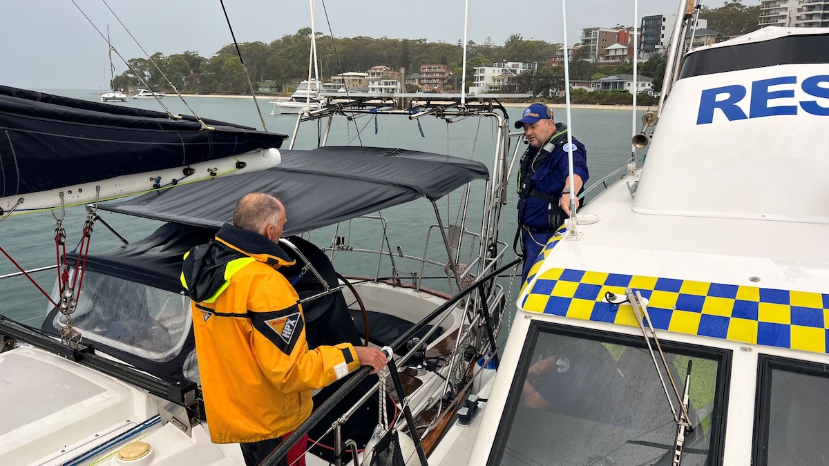 A crew from Marine Rescue Middle Harbour assists a disabled vessel
