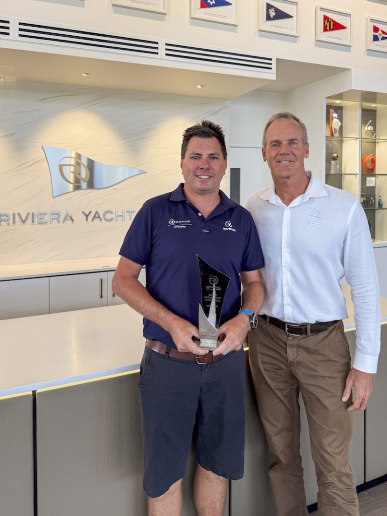Accepting the award, Dealership Owner Ben Crawley said: “I was brought up boating on Riviera yachts and everything we do is focused on the boat owner’s needs and experience. Over the years our team and I have made some fantastic friends with our owners and it’s a pleasure and real fun!