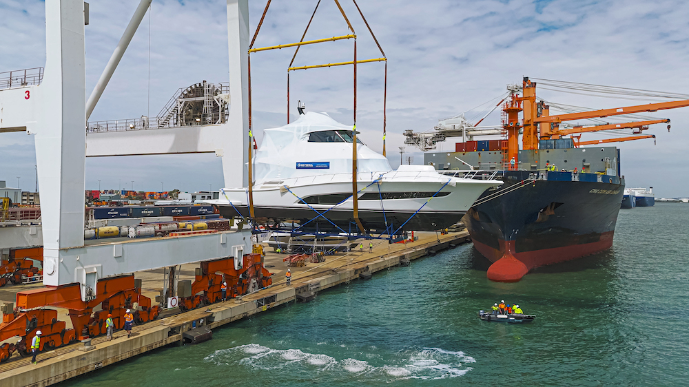 The precious cargo of 15 luxury Riviera motor yachts was delivered to Florida on the east coast of the United States where most were exhibited as part of the 12-yacht Fort Lauderdale Boat Show display.