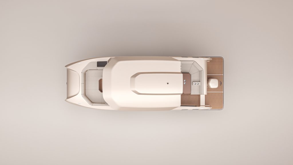 The Skye’s design is as thoughtful as its technology. With a stable and spacious catamaran hull, it comfortably accommodates up to 10 passengers. The deck is divided into three distinct zones: a large daybed midship, bowrider seating at the front, and an aft lounging area with a generous table for meals and gatherings.