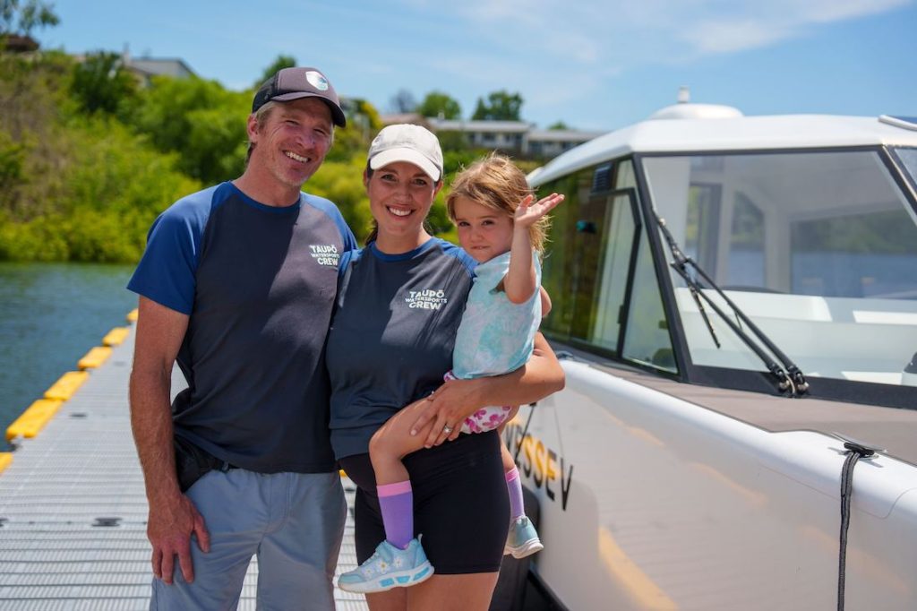 James and Laurel Kells, currently owner-operators of Taupō Water Sports, have unveiled their new venture, Taupō Hydrofoil Tours, which will offer flights to iconic destinations around the lake on a Vessev VS–9 electric hydrofoiling catamaran.