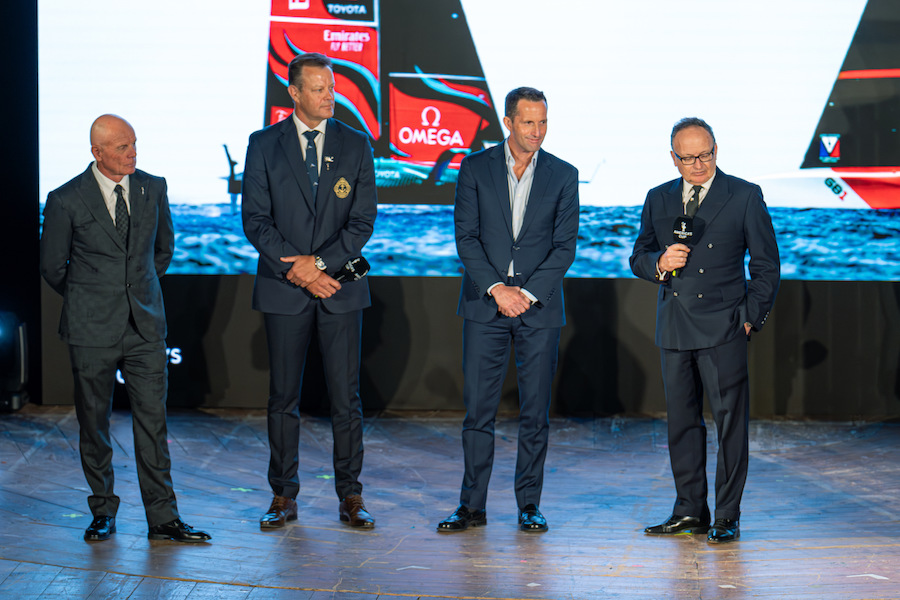 The Defender and Challenger of Record on stage: Grant Dalton and David Blakey (ETNZ/RNZYS) and Sir Ben Ainslie with Robert Bicket (GB1/RYS).