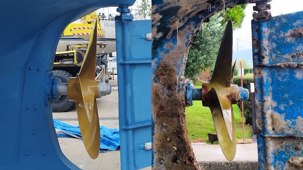 The vessel was at sea for a total of 14 months, during what Andrea described as a particularly difficult year for fouling, with levels of marine growth unlike anything they had experienced in the past fifty years. Despite the challenging season, the Propspeed-coated propeller showed no signs of performance decline. Their curiosity, research, and efforts were validated during haul-out, where the propeller was found in excellent condition.