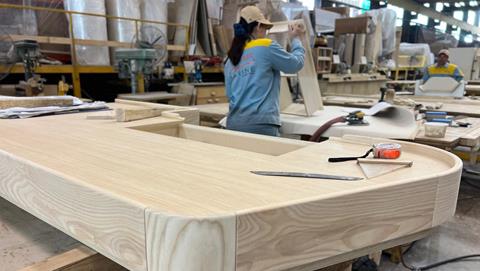One standout feature of Seawind’s approach is how much of the work is kept inhouse. From mast fabrication to upholstery, rigging, and even intricate timber joinery, Seawind manages nearly every step internally. The timber shop in particular is a highlight—producing solid timber trims, realveneer cabinetry, and detailed inlays with a level of craftsmanship that sets Seawind apart from most production yards.