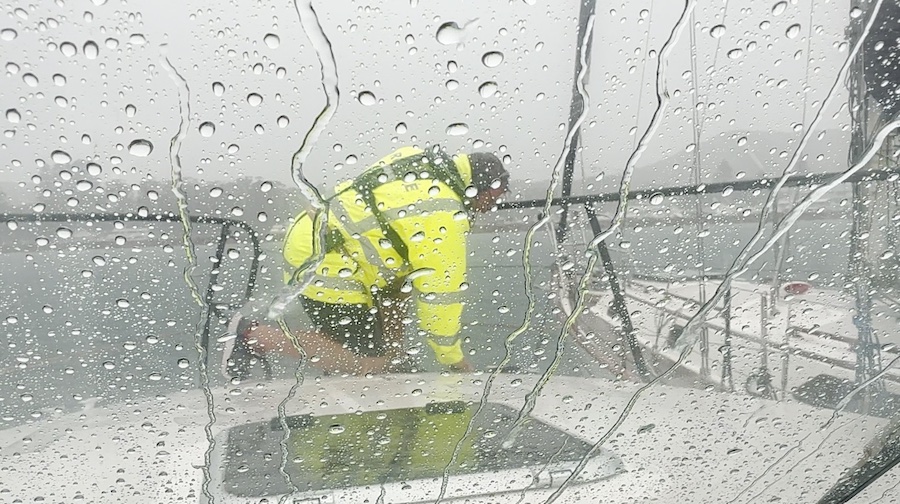 Marine Rescue Port Stephens crew assists a sailor in challenging conditions