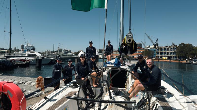 The crew of the Royal Australian Navy’s yacht, Navy One, prior to setting sail on the Sydney to Hobart Yacht Race.