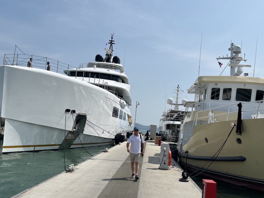 During the dock walks, representatives met with over 22 vessels across both marinas, supported by marina leadership including Kevin Qulity, Marina Manager at Ao Po Grand Marina, and Daniel Srimongkol, newly appointed Manager at Phuket Yacht Haven Marina. Several large superyachts were present, including 70m M/Y Alfa, 55m M/Y Azamanta and 45m M/Y Berzinc.