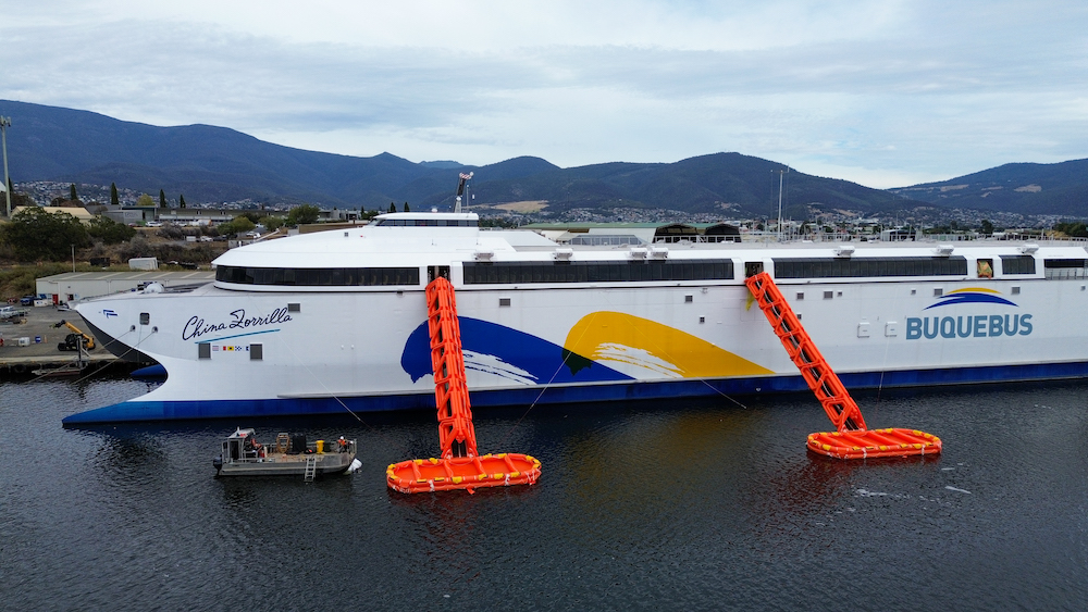 A significant safety milestone has been completed at Incat Tasmania’s Hobart shipyard, with the successful deployment of the Marine Evacuation System (MES) aboard Hull 096.