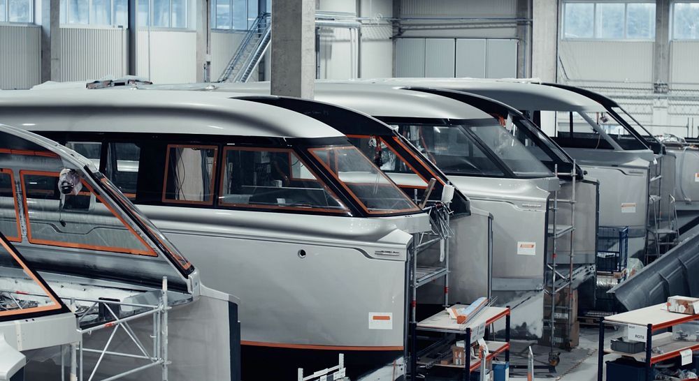 Candela P-12 ferries in production at Candela’s Stockholm factory in Rotebro.