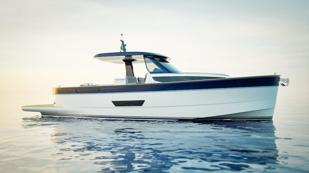Specifically, the boat can be powered by two Volvo Penta D6 engines with shaft drives – 380 hp or 480 hp – or by two Volvo Penta IPS units – 500 hp or 600 hp – for top speeds of between 27 and 36 knots and cruising speeds of between 22 and 27 knots. The boat’s range is ensured by one of the largest fuel tanks in the category, containing 1,200 litres.