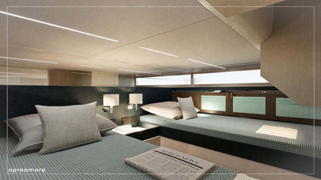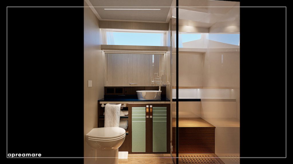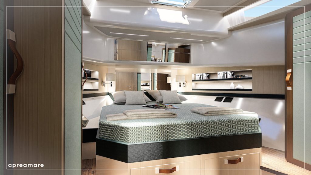 The project is a joint development effort by Cataldo Aprea, Marco Casali (Too Design), who provided the design and styling, and Umberto Tagliavini (Marine Design) who defined the naval architecture in collaboration with the shipyard’s Technical Office. The resulting boat is a perfectly balanced take on the Apreamare identity: respect for tradition, build quality and functional innovation devised for the contemporary owner.