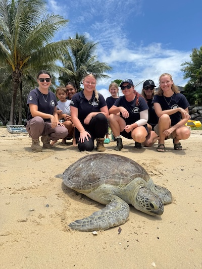 The day concluded with a particularly special moment at Boathaven Beach — the release of “Tina,” an adult green sea turtle who had spent two weeks recovering at the Whitsunday Turtle Rescue Centre. Tina was admitted covered in barnacles and algae but was otherwise healthy. After careful cleaning, care and a diet including her favourite squid, she was successfully returned to the sea to the delight of volunteers and onlookers.