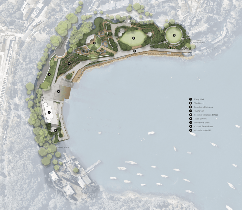 Berrys Bay foreshore parkland schematic plan, February 2026. Subject to change.