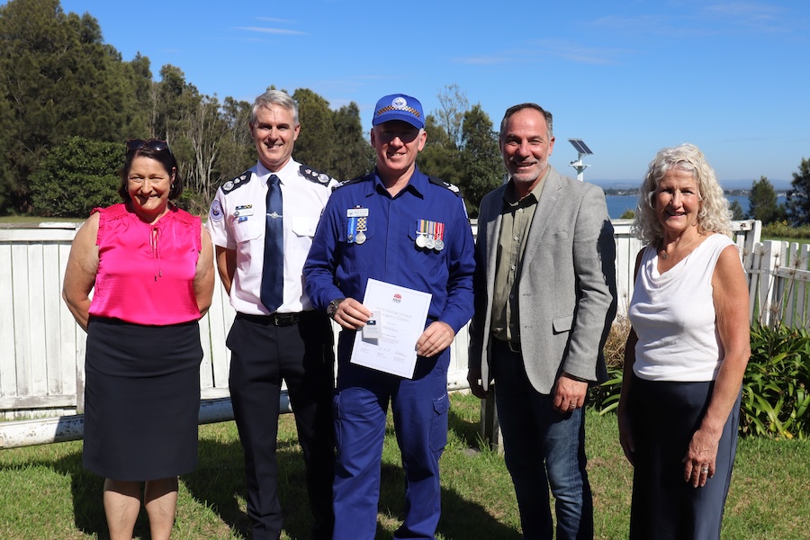 Emergency Services Minister Jihad Dib presented the citations to Marine Rescue NSW volunteers from across the region at the Marine Rescue Shoalhaven base, including members from the Marine Rescue Shellharbour, Shoalhaven, Jervis Bay and Sussex Inlet units, as well as Illawarra Inspector Stuart Massey.