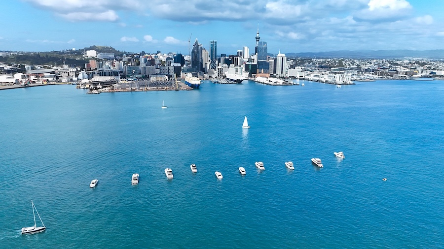 Friday began in near-perfect conditions. With temperatures hovering around 25 degrees, and barely a breath of wind. The fleet of 20 Maritimo luxury motor yachts gathered at Westhaven Marina, just off Auckland Harbour. “It was exciting to see so many of our boats together.” said Grant.