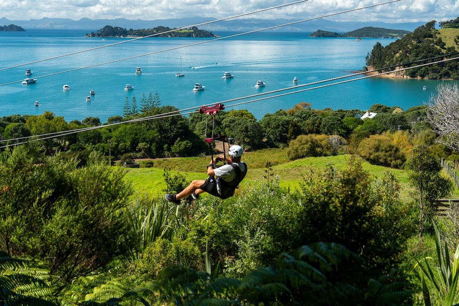 On Sunday morning, guests made the most of the perfect conditions, soaking up the sunshine and relaxed island atmosphere as the final day unfolded. Twenty-two lucky winners of the random draw for the Man O’ War “Forest Flight” zipline took to the skies, soaring high above the island’s landscape before gliding back down to the bay below – an unforgettable highlight to close out the experience. Others chose to take it at a slower pace, enjoying the surroundings, connecting with fellow guests, and making the most of the final moments together. From there, the fleet gradually dispersed, with some returning to home port while others continued on to new cruising destinations, extending their time on the water and carrying the spirit of the weekend into the next leg of their adventure.