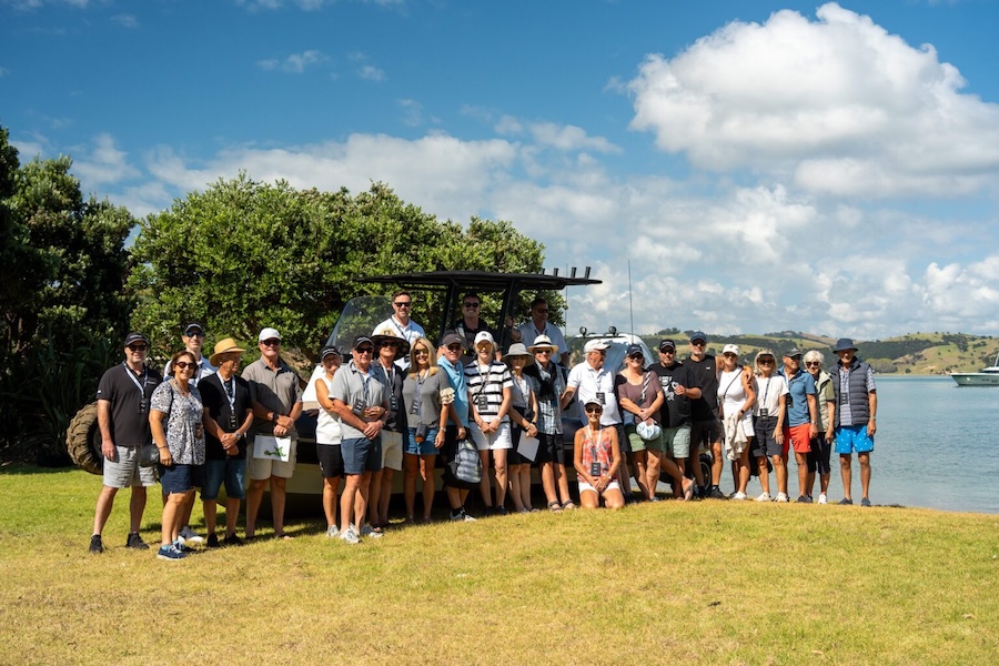 The official welcome began mid-afternoon at Man O’ War Winery. Owners and guests – more than 70 in total – gathered for a relaxed briefing before moving into a curated wine tasting experience. Set among the vines and overlooking the bay, it was the perfect introduction to the weekend: informal, social, and distinctly New Zealand.