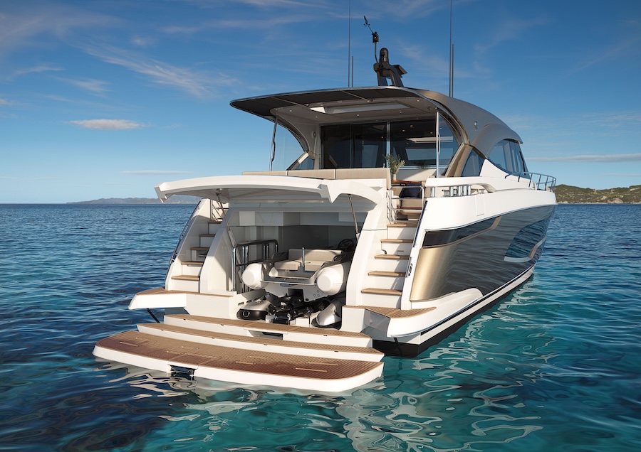 Owners and guests can enjoy all-season alfresco entertaining on the generous aft deck, relax on the forward lounge and sunbeds, or take advantage of the hydraulic swim platform that lowers to launch the tender and create a private beach experience.