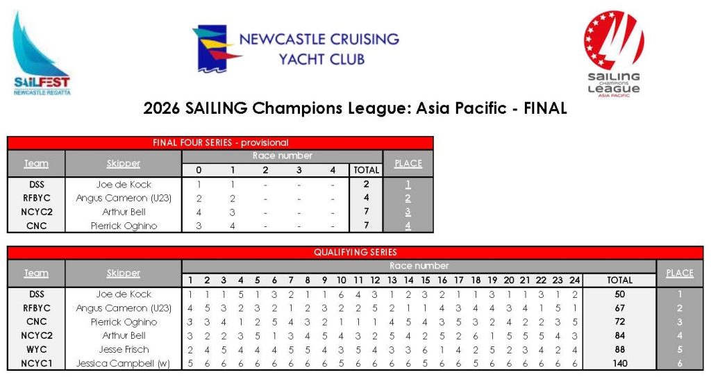 “The final race had everything. Tight racing, pressure moments and a finish that could not have been closer,” Turnbull said. “It’s a credit to the teams and a great showcase for sailing on Newcastle Harbour.”