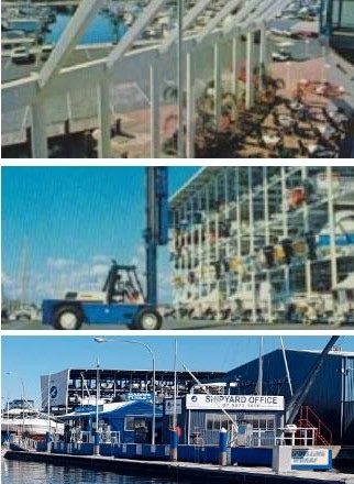 One of the most groundbreaking concepts was the dry-stack storage facility. Designed with a distinctive V-shaped roof, it created downward wind pressure to hold boats securely in their racks, an elegant solution that avoided the lift and instability issues common with flat-roof designs.