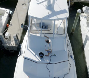 Over time, scrubbing with a coarse rag or stiff brush will scratch soft and delicate boat surfaces. Knowing that some such surfaces extended beyond arm’s reach, Shurhold introduces its new Microfibre Pad Base Cover. This, used along with a Shurhold Chenille Microfibre Premium Scratch-Free Wash Mitt, adds a gentle but thorough touch to vessel detailing. The benefits of microfibre are further explained in a Clean-N-Simple Tip.