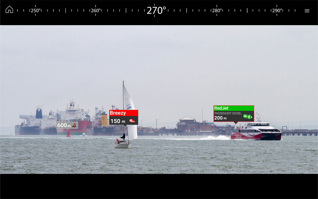 The integration of ClearCruise augmented reality system within Axiom is highly conducive to making better-informed navigation decisions and improving collision avoidance. By combining the AR200 Augmented Reality Stabilization Module with either a CAM210 or CAM220 high-definition camera The ClearCruise functionality overlays important navigation features on the screen in HD video. Colour-coded labelling provides instant identification of significant chart objects, marks, waypoints, and AIS-equipped vessels, increasing responsiveness to marine traffic and clarifying otherwise complex or confusing navigation scenarios.